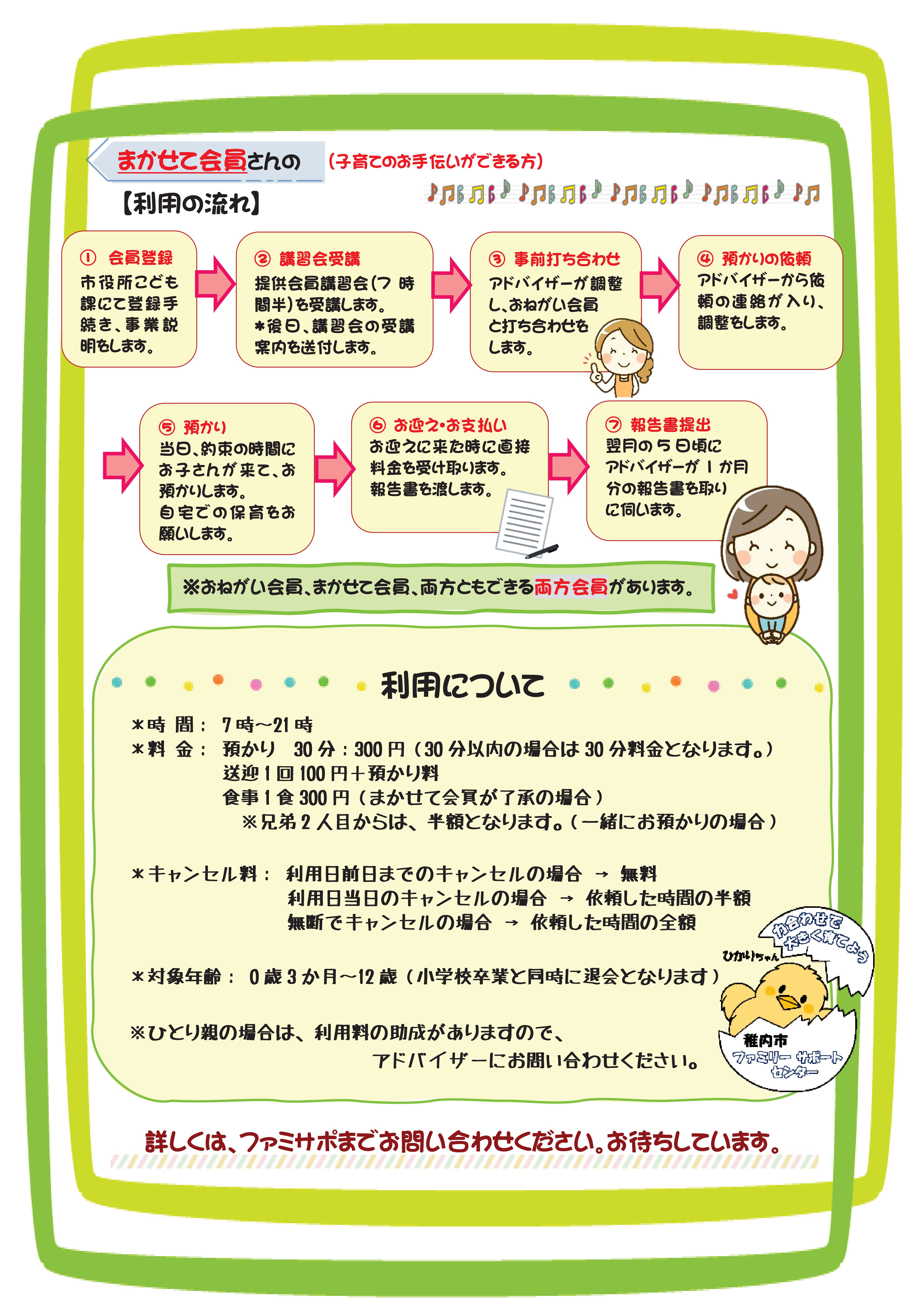 ※まかせて・両方会員は登録後、ファミリー・サポート・センターが開く講習会を受講していただきます。